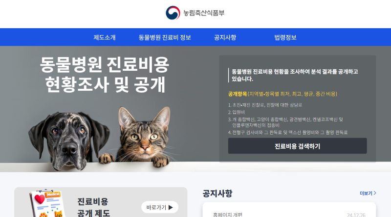 이를 돕기 위해 농림축산식품부에서는 '동물병원 진료비용 현황 조사' 포털을 운영하며, 진료비 정보를 투명하게 공개하고 있다. 해당 포털(https://animalclinicfee.or.kr/index.do)에서는 전국, 시도, 시군구 단위별로 다양한 진료항목의 비용을 비교할 수 있다.