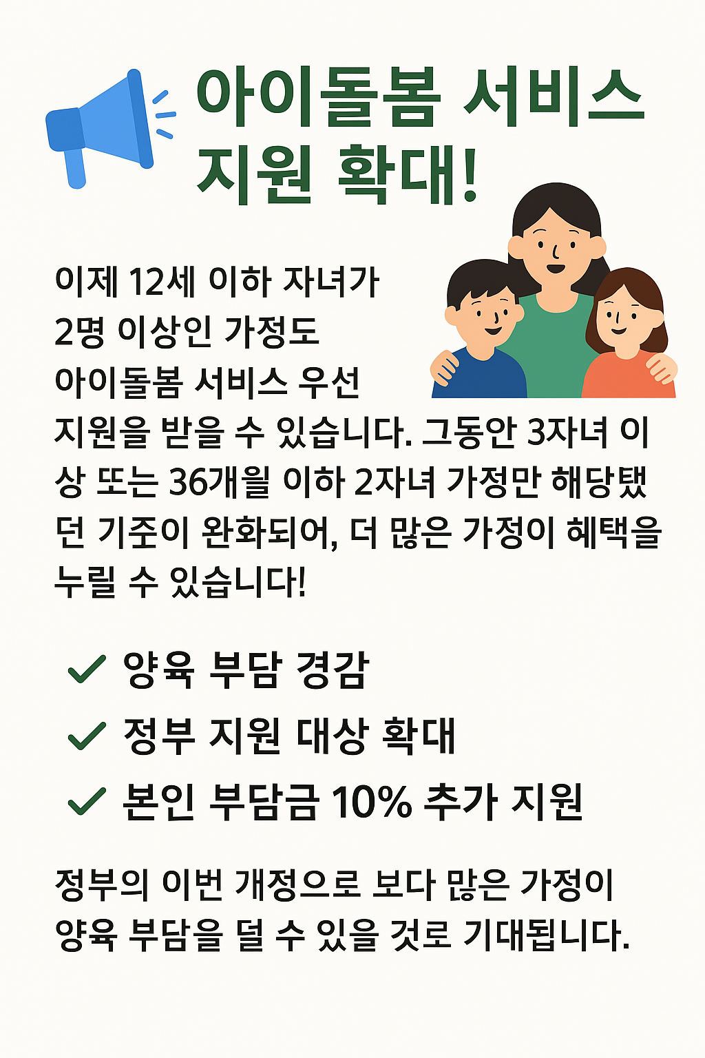 이번 변화가 어떤 영향을 미칠지, 그리고 아이돌봄 서비스는 어떻게 이용할 수 있는지 자세히 살펴보겠습니다. 😊